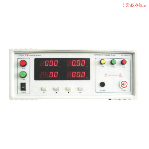 程控耐壓測試儀 MN0205D 功能特點:1、符合《GB4706》《IEC60335》家用和類似用途電器的安全 2、符合《GB7000》《IEC60598》燈具一般安全要求與試驗 3、符合《GB4943》《IEC60950》信息技術設備安全 4、符合新規(guī)程耐壓儀檢定規(guī)程的要求 5、無觸點升壓,組件耐壓絕緣測試儀,50/60Hz雙頻輸出,絕緣手套絕緣靴耐壓測試儀,滿足國內、出口產(chǎn)品的測試要求 6、國內首創(chuàng)LPA(線性)技術,輸出波形純凈,耐壓絕緣接地測試儀,綠色環(huán)保 7、國內首創(chuàng)2%測試精度 8、體積國內最小,操作簡單易懂 9、可選配示波器接口,絕緣耐壓測試儀要強檢,實時偵測閃絡,拉弧現(xiàn)象 10、可選配RS-232、RS-485、遙控等接口,實現(xiàn)測試網(wǎng)絡化 11、可選配計算機軟件,便于數(shù)據(jù)存儲、分析、打印、查詢等操作 程控耐壓測試儀 MN0205D 技術參數(shù):