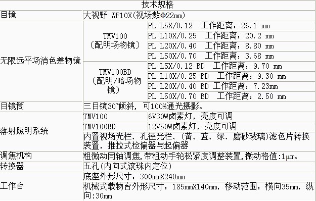 產(chǎn)品概述; 適用于對工件表面的組織結(jié)構(gòu)與幾何形態(tài)進(jìn)行顯微觀察。 功能特點: 適用于不同厚度工件檢測。機(jī)械移動式載物平臺可有效定位工件觀察部位。調(diào)焦機(jī)構(gòu)采用圓柱滾子導(dǎo)向傳動,,機(jī)構(gòu)升降平穩(wěn)。產(chǎn)品適用于精密零件,,集成電路,包裝材料等產(chǎn)品檢測。 技術(shù)參數(shù): 采用優(yōu)良的無限遠(yuǎn)光學(xué)系統(tǒng)與模塊化功能設(shè)計理念,可以方便升級系統(tǒng),,實現(xiàn)偏光觀察、暗場觀察等功能,導(dǎo)柱升降裝置,可以快速調(diào)整工作臺與物鏡之間的距離。 基本配置:
