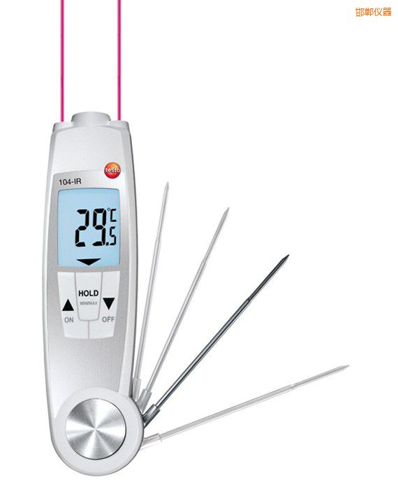 紅外及接觸式測溫二合一testo 104-IR配備精確的2點瞄準激光,光學(xué)分辨率10:1,測量范圍清晰可見,可隨時進行快速并精確的表面溫度測量。二合一溫度測量儀特別適用于食品進貨檢測以及快速檢測單個或整箱食品的表面溫度。 刺入式溫度探頭適用于測量如肉類和香腸等食品的核心中心溫度。通常,在紅外表面溫度測量不足以判定食品安全的情況下使用。刺入式探頭在不使用時可通過折疊方式收入儀器中,以防折斷損壞。