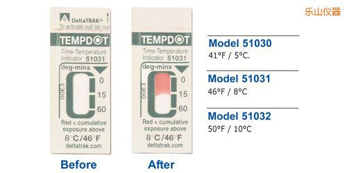 DeltaTrak提供滿足你各種需要的標(biāo)簽:WarmMark溫度標(biāo)簽、高溫?zé)針?biāo)簽和TempDot時(shí)間溫度指示標(biāo)簽顯示溫度變 化超過預(yù)設(shè)的時(shí)間。FreezeCheck和ColdMark溫度標(biāo)簽用于顯示運(yùn)輸溫度低于0℃。商業(yè)洗碗機(jī)使用的TempDot高溫?zé)針?biāo)簽可顯示最終沖 洗水溫是否達(dá)到71℃(HACCP體系所要求的溫度)。 TempDot時(shí)間溫度標(biāo)簽,,型號51030-51032,,是一種低成本的標(biāo)簽,,可顯示溫度高于閾值長達(dá)60分鐘。當(dāng)溫度超過臨界值,,標(biāo)簽顏色變化開始,但溫度下降到閾值之下時(shí),,標(biāo)簽顏色變化停止,,如此來顯示累積溫度超過的時(shí)間-,,對于許多質(zhì)保應(yīng)用來說,,度分鐘是非常的重要的概念。有三種溫度閾值5℃、8℃和10℃可供選擇。 這個(gè)低成本標(biāo)簽可以指示一段長到60分鐘暴露在臨界點(diǎn)溫度。