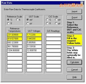 可輸入或導入校準的電阻或電壓原始數據。TableWare