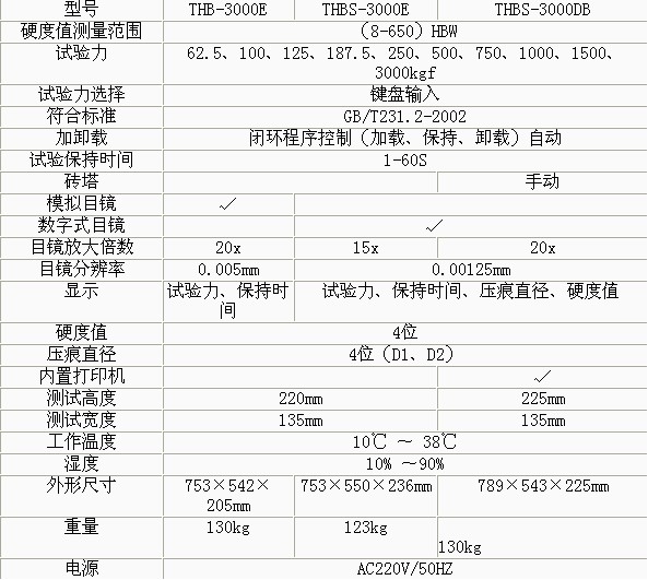 產(chǎn)品概述: 時(shí)代THB-3000D電子加載布氏硬度計(jì) 時(shí)代THBS-3000D液晶數(shù)顯布氏硬度計(jì) 時(shí)代THBS-3000DA直讀數(shù)顯布氏硬度計(jì) 功能特點(diǎn): THB-3000E最新的C++語言編制程序+壓力傳感器CPU控制系統(tǒng),大幅度提高硬件在運(yùn)行中的可靠性和穩(wěn)定性,hbc型錘擊式布氏硬度計(jì),動(dòng)態(tài)力值波動(dòng)小于1/1000, 確保力值更精確,布氏硬度值,示值更穩(wěn)定,具有良好的可操作性和人性化,液壓式布氏硬度計(jì),布氏試驗(yàn)力:十級(jí)。 THBS-3000E采用LED液屏菜單顯示:硬度值.、測(cè)試力、保荷時(shí)間、動(dòng)態(tài)顯示加荷、保荷和卸荷全過程,采用數(shù)字編碼器測(cè)量方式,布氏硬度計(jì)廠家,可直接將實(shí)驗(yàn)結(jié)果在屏幕顯示,king便攜式布氏硬度計(jì),無須查表、無須手動(dòng)輸入。 HBS-3000DB獨(dú)一無二的雙核閉環(huán)控制系統(tǒng),時(shí)代布氏硬度計(jì),16位模數(shù)轉(zhuǎn)換器,確保力值精確性和示值穩(wěn)定性數(shù)字信號(hào)輸出,浙江硬度計(jì),確保力值精確性、示值穩(wěn)定 性,100組超大容量數(shù)據(jù)存儲(chǔ)庫;采用數(shù)字編碼器測(cè)量方式,布洛維硬度計(jì),可直接將實(shí)驗(yàn)結(jié)果在LED大屏幕顯示,濟(jì)南硬度計(jì),在待機(jī)模式時(shí),在線布氏硬度計(jì),快速查看歷史和當(dāng)前的測(cè)量次數(shù)與結(jié)果。 技術(shù)參數(shù):