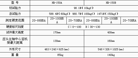 基本配置: HR-150A: 主機(1臺) A標尺標準硬度塊(HRA80~88)(1塊) B標尺標準硬度塊(HRB80~95)(1塊) C標尺標準硬度塊(HRC35~55)(1塊) Φ1.5875mm鋼球壓頭(3只) 120°金剛石圓錐壓頭(1只) 壓頭緊定螺釘(1個) Φ60mm平面樣品臺(1個) Φ120mm平面樣品臺(1個) Φ60mm V型樣品臺(1個) 可選附件: Φ70mm平面樣品臺 Φ70mm V型樣品臺 Φ120mm 平面樣品臺 Φ80mm平面樣品臺 Φ80mm V型樣品臺 小V型/點狀兩樣用樣品臺