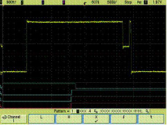 當(dāng)您觀察復(fù)合調(diào)制模擬信號(hào)如前述組合電視信號(hào)和馬達(dá)驅(qū)動(dòng)信號(hào)時(shí)數(shù)字示波器亮度分級(jí)能力具有鮮明的視覺(jué)效果。在您調(diào)試數(shù)字電路時(shí),亮度等級(jí)對(duì)于發(fā)現(xiàn)信號(hào)異常也極端重要。圖6是發(fā)現(xiàn)嵌入在脈寬調(diào)制信號(hào)(PWM)中矮脈沖的例子。靠近各突發(fā)中心處的亮點(diǎn)表明示波器已捕獲到信號(hào)異常。通過(guò)在一個(gè)亮點(diǎn)上放大我們能清楚看到如圖7所示的信號(hào)異常細(xì)節(jié)。雖然模擬示波器也能通過(guò)重復(fù)掃描顯示亮點(diǎn)但模擬示波器不能保存和放大波形。