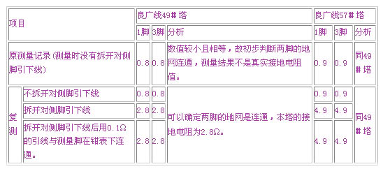 我們復(fù)測了110kV良廣線74#塔北廣線7#塔的接地電阻結(jié)果如表1所示: