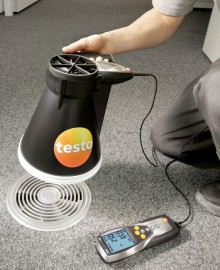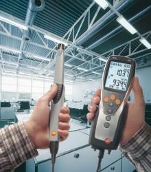 用于管道測量的流速傳感器都帶有伸縮桿,,便于在大型空氣管道中進(jìn)行操作。如果需要,還可以使用測量流速的探頭來測量溫度和濕度?梢愿鶕(jù)應(yīng)用需求選擇熱敏探頭、葉輪探頭或皮托管來測量管道中的流速。 測量室內(nèi)空氣質(zhì)量(二氧化碳)![]() 高濃度的二氧化碳會導(dǎo)致室內(nèi)空氣質(zhì)量變差,從而使人體感覺疲倦,無法集中精神,甚至生病。因此,為了保證良好的室內(nèi)空氣質(zhì)量,二氧化碳濃度一般不應(yīng)超過1 000 ppm。參考范圍為700到1500 ppm。 IAQ探頭(訂貨號0632 1535)尤為適合監(jiān)控室內(nèi)空氣質(zhì)量。此探頭可以同時記錄二氧化碳濃度、溫度和相對濕度。 在通風(fēng)管道內(nèi)使用皮托管進(jìn)行測量為了確保通風(fēng)和空調(diào)系統(tǒng)的正常功能,對通風(fēng)管道內(nèi)的空氣流速進(jìn)行檢測是非常重要的。 testo 435-3的內(nèi)部壓差傳感器用來測量高流速或高污染的氣流,皮托管測量范圍從0到64米/秒的空氣流速。testo 435-3可以同時顯示壓力、流速和體積流量。 在儀器背后的磁貼可以實現(xiàn)免提操作。 過濾器上壓差測量![]() 空調(diào)系統(tǒng)配有過濾器,可以防止室外空氣中的灰塵進(jìn)入室內(nèi)。應(yīng)定期檢查這些過濾器,以確保它們運(yùn)行良好。為此,,需要測量過濾器前后的壓力差。如果壓差過大,說明過濾器被污染,需要更換。 testo 435-3內(nèi)置壓差傳感器,測量范圍0到25 hPa。在壓差測量過程中會進(jìn)行溫度補(bǔ)償,以得到精確讀數(shù)。在儀器背后的磁貼可以實現(xiàn)免提操作。 熱輻射的測量![]() 多功能測量儀testo 435能夠幫助您可靠地測量熱舒適度。連接一個熱輻射黑球探頭(訂貨號0602 0743),測量輻射熱量(也就是有效或感知溫度)。熱輻射黑球探頭測量的有效溫度與人體感知溫度的差值最好不超過± 0.41 K。 室內(nèi)溫度(空氣溫度和有效溫度)的測量要采取在同一個地方,相同的條件,如室內(nèi)空氣流速的一致的情況下進(jìn)行。 測量空氣和表面溫度為了讓人體感覺舒適,達(dá)到最佳狀態(tài),房間內(nèi)必須調(diào)節(jié)空調(diào)運(yùn)行工況。除了建筑結(jié)構(gòu)因素和個體感覺,以下因素也會在很大程度上影響室內(nèi)空氣的舒適度:室內(nèi)空氣溫度以及墻壁、窗戶、底板和天花板的表面溫度。 testo 435提供滿足不同應(yīng)用的熱電偶探頭。表面探頭(訂貨號0602 0393)和空氣濕度探頭(訂貨號0636 1712)很適合分析結(jié)露問題和霉變的情況。 出風(fēng)口風(fēng)速測量![]() 為了確保系統(tǒng)的高效使用,每個管道的進(jìn)出口體積流量都應(yīng)符合要求,,這是一個基本的前提條件。 在出風(fēng)口處,,適合采用直徑100mm的葉輪風(fēng)速探頭來測量體積流量(訂貨號0635 9435),因為它們可以對較大面積的流速進(jìn)行綜合測量,從而排除通風(fēng)格柵所產(chǎn)生的干擾(回路方法)。 在空氣格柵和提升閥的抽風(fēng)口或出風(fēng)口進(jìn)行測量時,適合采用我們的風(fēng)量罩套裝(訂貨號0563 4170)以及直徑100mm葉輪風(fēng)速探頭(訂貨號0635 9435)。通過風(fēng)量罩來記錄整體體積流量值,不需要根據(jù)流速和面積進(jìn)行計算。這種流量測量方法簡單、可靠。 一氧化碳測量![]() 一氧化碳(CO)是一種無味、無色、無刺激性的氣體,但是有毒。它是在熱源和燃機(jī)內(nèi)的煤、木頭、油、天然氣等含碳物質(zhì)燃燒不充分情況下產(chǎn)生的。一氧化碳濃度增加速度很快,尤其是在沒有足夠氧氣的情況下,并可能對健康產(chǎn)生不良影響。 即使環(huán)境空氣中含有微量的一氧化碳,環(huán)境一氧化碳探頭(訂貨號0632 1235)和testo 435-1也能夠檢測到。