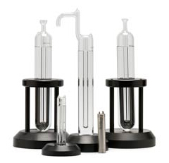 · 純度極高,不確定度極低 · 多種尺寸,多種選擇 · 優(yōu)異的同位素水平 · 特殊應(yīng)用的小型水三相點 水三相點(TPW)是唯一一個同時被熱力學溫標和國際溫標定義的溫度固定點。熱力學溫度的單位,,開爾文,被定義為水三相點熱力學溫度的1/273.16。它也是1990年國際溫標(ITS-90)的定義固定點。 因此水三相點溫度是最重要、最準確、最易于使用的溫度標準。福祿克的水三相點瓶以小于0.0001℃的擴展不確定度實現(xiàn)0.01℃溫度。如果您擁有標準鉑電阻溫度計SPRT,就必須要有一個高質(zhì)量的水三相點瓶。 純度極高,不確定度極低 福祿克公司的水三相點瓶內(nèi)是經(jīng)過精心多次蒸餾的海洋水,并經(jīng)過嚴格抽真空和密封,其同位素幾乎等同于國際標準——“維也納標準平均海水”或“VSMOW”。由于水雜質(zhì)引起的潛在誤差甚至高于同位素產(chǎn)生的誤差。福祿克的容器經(jīng)過多次蒸餾處理,并利用特殊技術(shù)來維持水的純度。尤其是我們基標準專家可以直接將石英容器連接到玻璃蒸餾系統(tǒng),而無需采用可能會引起污染的對接硬件。福祿克的絕大多數(shù)水三相點瓶的外殼為硼硅玻璃或石英。玻璃比石英要便宜,但也更容易滲透。隨著時間的推移,會有雜質(zhì)滲透。研究表明,玻璃容器每年的漂移通常為 0.000006℃,而石英容器則小得多,因此需要根據(jù)具體情況來選擇。 多種尺寸,多種選擇 福祿克的水三相點瓶具有4種常用的尺寸。5901A、5901C和 5901D均提供石英或玻璃外殼,并且提供265 mm的插入深度。這些型號之間的主要不同(除5901A上的支架外)是探頭井的內(nèi)部直徑。5901A容器包括一個支架,可作為手柄、掛鉤,或者作為 McLeod真空計來證明在容器內(nèi)殘留了多少空氣。 優(yōu)異的同位素水平 大多數(shù)水中的氧原子主要是由8個質(zhì)子和和8個中子(16O)組成的,但是一些氧原子額外多一個( 17O)或兩個(18O)中子。相類似, 水中的氫原子通常僅含有一個質(zhì)子(1H), 但是有時還會( 2H),, 從而形成“ 重水”。這些同位素以不同的比例共存于海洋水、極化水和大陸水中,其中海洋水是最重的。 ITS-90溫標建議使用“具有與海水同位素基本一致的”水制造水三相點瓶。研究表明,同位素引起的TPW誤差最大可達 0.00025℃。在福祿克容器中,由于偏離VSMOW而產(chǎn)生的不確定度低于0.000007℃。也就是僅有7uK! 特殊應(yīng)用的小型水三相點 眾所周知,SPRT價格非常昂貴。 SPRT使用一段時間后會產(chǎn)生漂移,如果發(fā)現(xiàn)其產(chǎn)生的漂移量超過正常范圍并及時退火,,仍能夠恢復其正常性能。據(jù)統(tǒng)計,永久性損壞的SPRT中有40%是由于漂移過量未及時退火而造成的。因此,及時監(jiān)測SPRT的漂移量是十分必要的。福祿克公司提供的小型水三相點可以方便快捷地檢查SPRT在水三相點的漂移量,幫助您判斷其是否超差,并及時采取措施,延長其使用壽命。數(shù)據(jù)證明,延長兩支到八支SPRT的使用壽命,就可收回購買小型水三相點的投資。