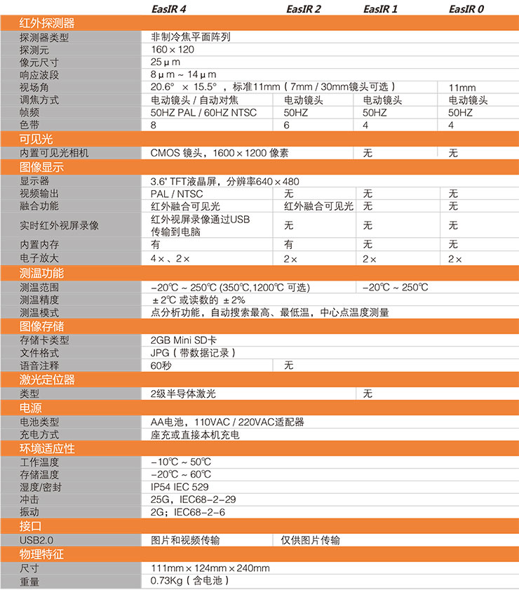 應(yīng)用特點(diǎn) 自動(dòng)對(duì)焦技術(shù) 紅外及可見光均可進(jìn)行自動(dòng)對(duì)焦 靈活的電池適配性 隨處可見的普通AA電池可保證高效持續(xù)的工作效率 紅外融合技術(shù) 幫助你快速準(zhǔn)確發(fā)現(xiàn)異常之處 智能導(dǎo)航界面 無需使用說明書便能輕松快速地操作使用 堅(jiān)固且人性化的 外觀設(shè)計(jì)方便單手操作的設(shè)計(jì),紅外熱像儀技術(shù)指標(biāo),同時(shí)具備抗3米跌落的能力