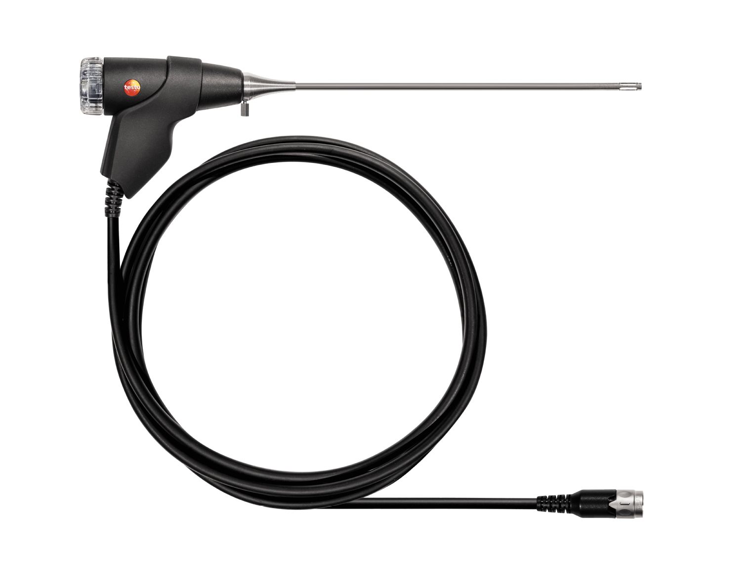 模塊化煙氣探頭帶有長(zhǎng)度為 180 mm 的探針套管、圓錐體、耐溫500 °C 的集成式熱電偶以及快換卡合系統(tǒng)